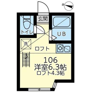 | 間取り | ワンルーム(洋6.3ワンルーム) | 主要採光面 | - |